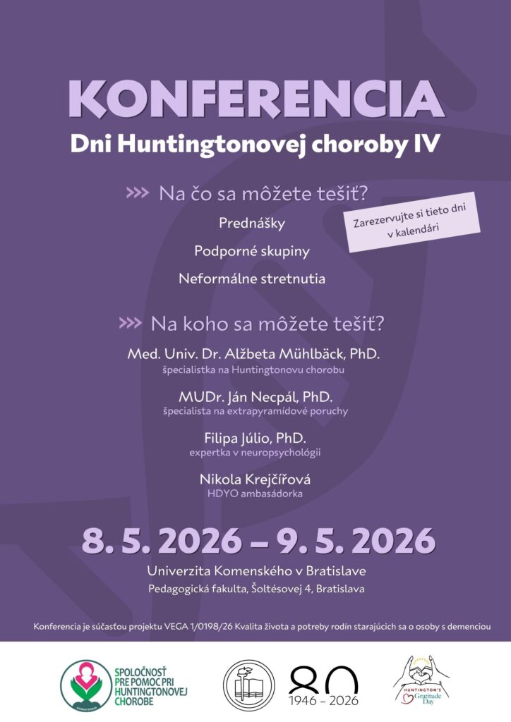 Milí členovia SPHCH, milí priatelia, srdečne Vás pozývame na IV. dni Huntingtonovej choroby, ktoré sa uskutočnia v dňoch 8. – 9. mája v Bratislave. Aby sme mohli celé podujatie čo najlepšie zorganizovať, prosíme Vás o registráciu prostredníctvom nasledujúceho odkazu: https://docs.google.com/forms/d/e/1FAIpQLSd-jMeZmwnAwmEI5OL_HxHmKhuEda7KLWFA6cj2jvD5amWNQg/viewform Radi by sme Vás zároveň poprosili, aby sa registrovali všetci účastníci bez ohľadu na formu …